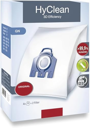 Miele Original GN AirClean 3D Efficiency Vacuum Cleaner Bags for Miele Classic C1 Complete C2/C3 and S2/S5/S8 Vacuum Cleaners Pack of 4 Dust Bags a