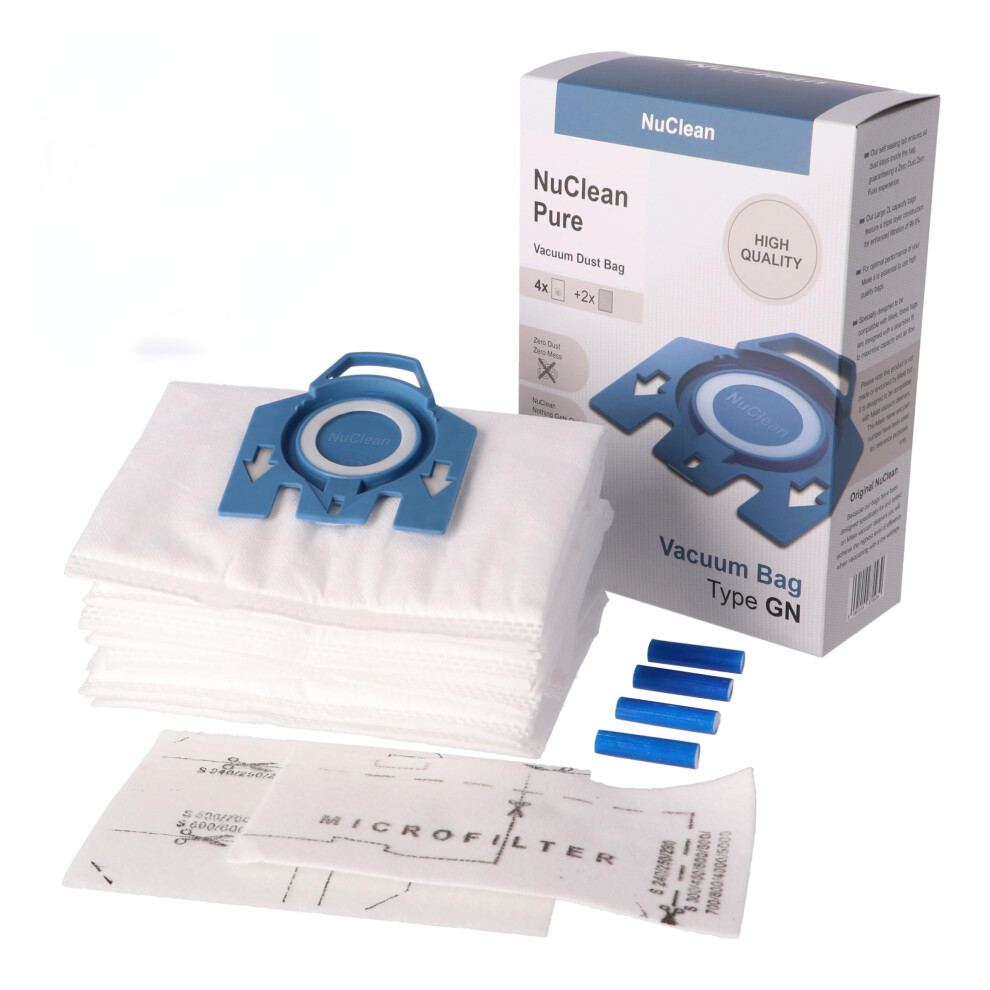 NuClean - Replacement for Miele Hyclean Hoover Bags - Compatible With 9917730 GN C3 Vacuum hoover Bag - (4 Bags, 2 Filters & Scented Freshners)