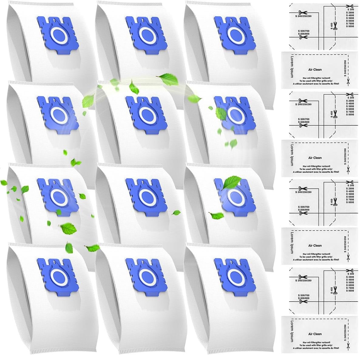 (As show, One size) 15 Pack Replacement Vacuum Bags Effective Dust Filtration Compatible with Miele/Fjn/GN Hyclean 3D S8
