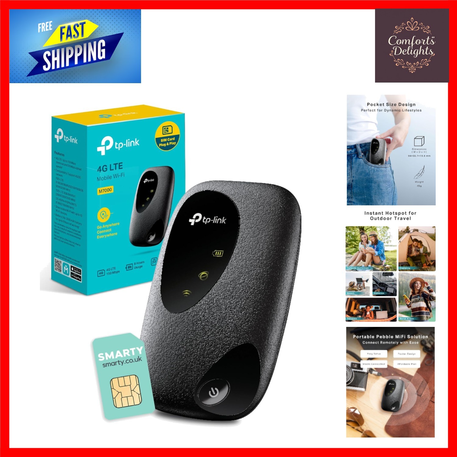 TP-Link M7000 4G MiFi Router, Portable Travel wifi Router with SIM Card Slot, Unlocked LTE-Advanced Cat4 Mobile WiFi Hotspot Dongle, 8 hours wireless connection, Caravan wi-fi, High Compatibility