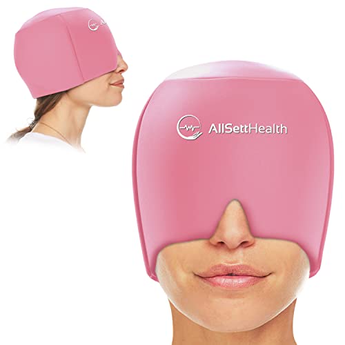 AllSett Health Migraine Relief Ice Head Wrap Headache & Migraine Hat, Cold Gel Head Ice Pack w/ Face & Eye Mask Compress for Cooling Migraine, Tension Headache Relief, Sinus Pressure Relief, Pink