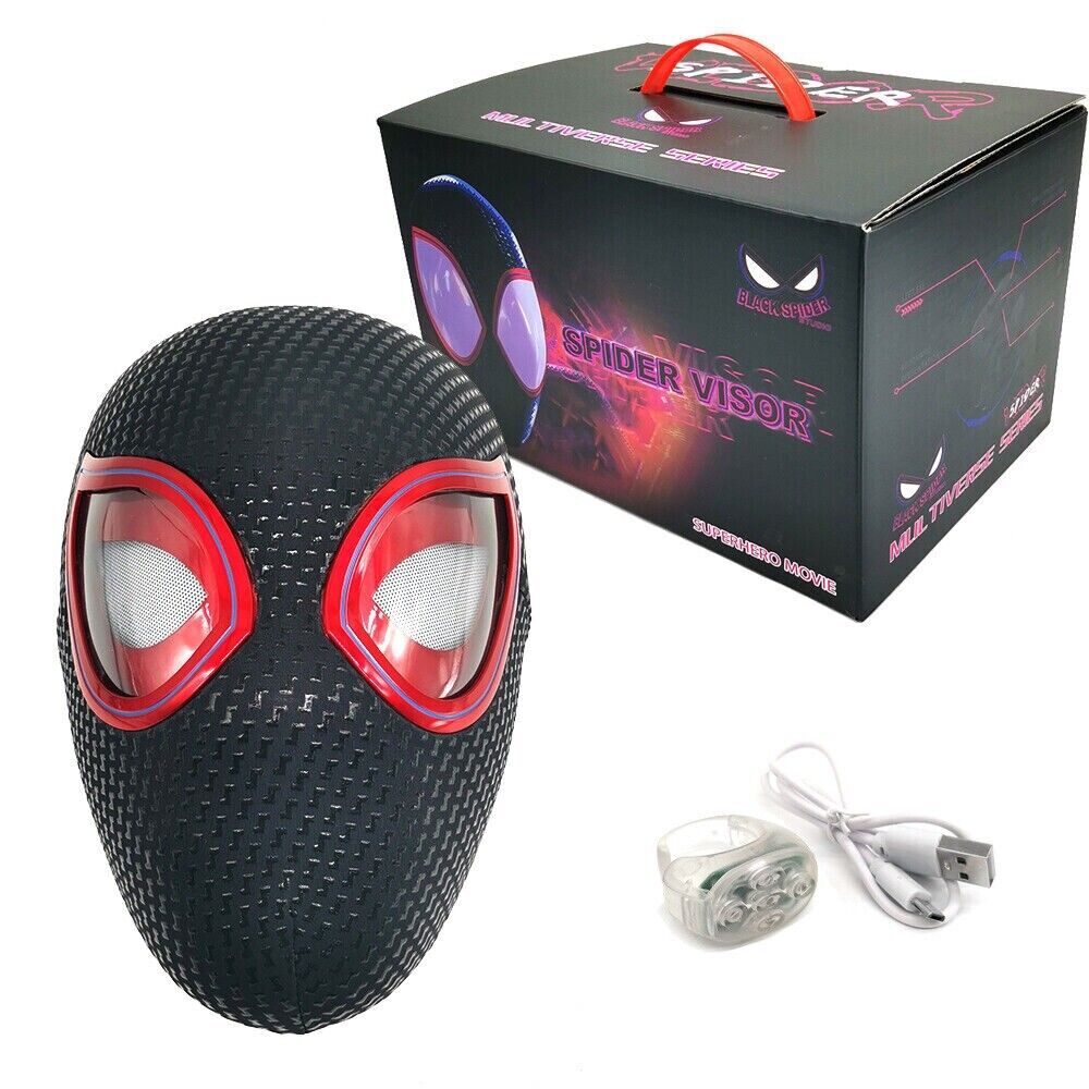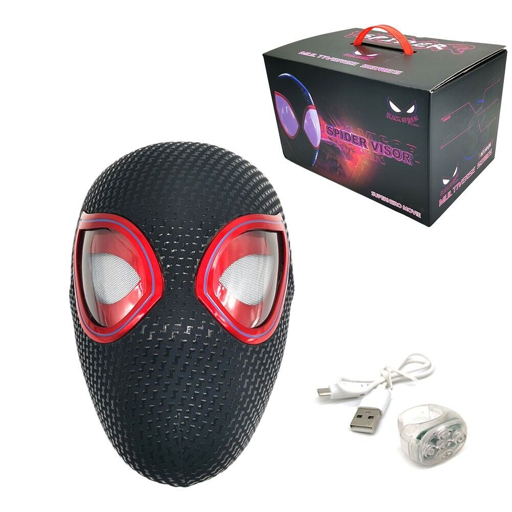Spiderman Miles Morales Helmet Wearable Mask Remote Eyes Light Cosplay Prop New