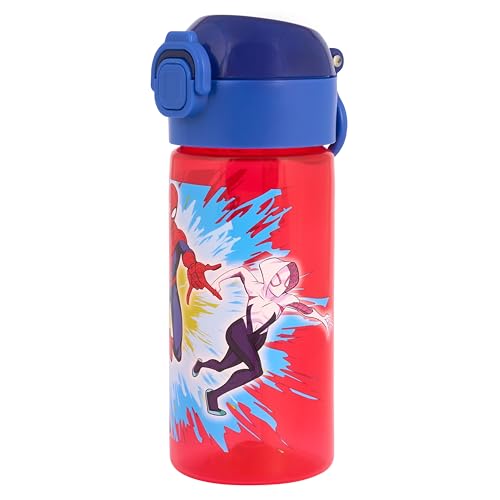 Marvel Spider-Man 420ml Polypropylene Water Bottle with Pop Up Lid and Straw by Polar Gear, Featuring Miles Morales and Ghost Spider, Ages 48+ Months