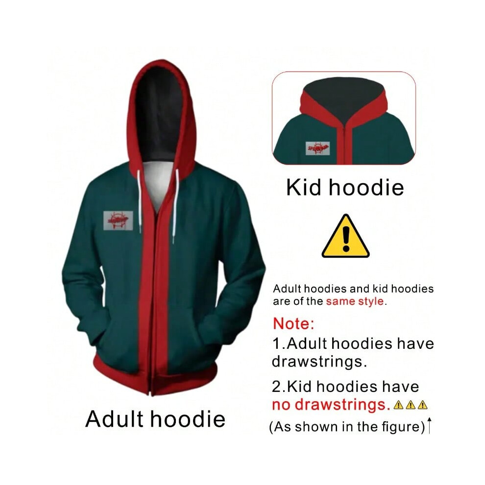(Hoodie, Kid 120) SpiderVerse New Era Miles Morales SpiderMan Cosplay Costume Full Bodysuit 3D Print Zipper Hoodie Black Shorts Halloween Dress Up