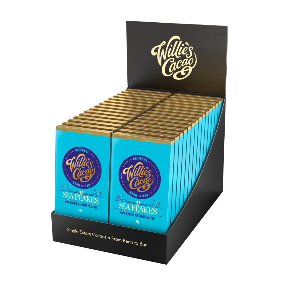 Willie's Cacao - Sea Flakes milk chocolate bar, 44% Milk Chocolate with Cornish Sea Salt - 26g x 30 - Artisan Chocolate - Bean to bar