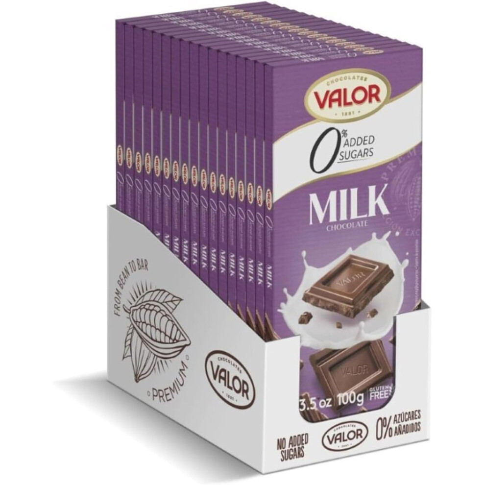 Valor Sugar Free Milk Chocolate Bar - Milk Diabetic Chocolate Bar - Made with Fine Cocoa, Sweetened with Stevia, Gluten Free, by Master Chocolatiers - All the Pleasure Sugar-Free, Box 17 100g Bars