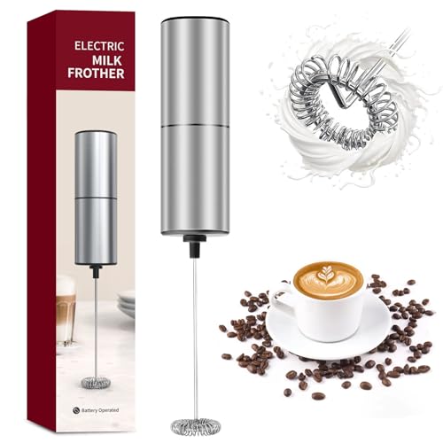 Milk Frother Handheld Whisk Stainless Steels Battery Powered Drink Mixer, Milk Frother Foamer & Mini Drink Mixer Coffee Frother, Electric Portable for Latte, Cappuccino, Hot Chocolate