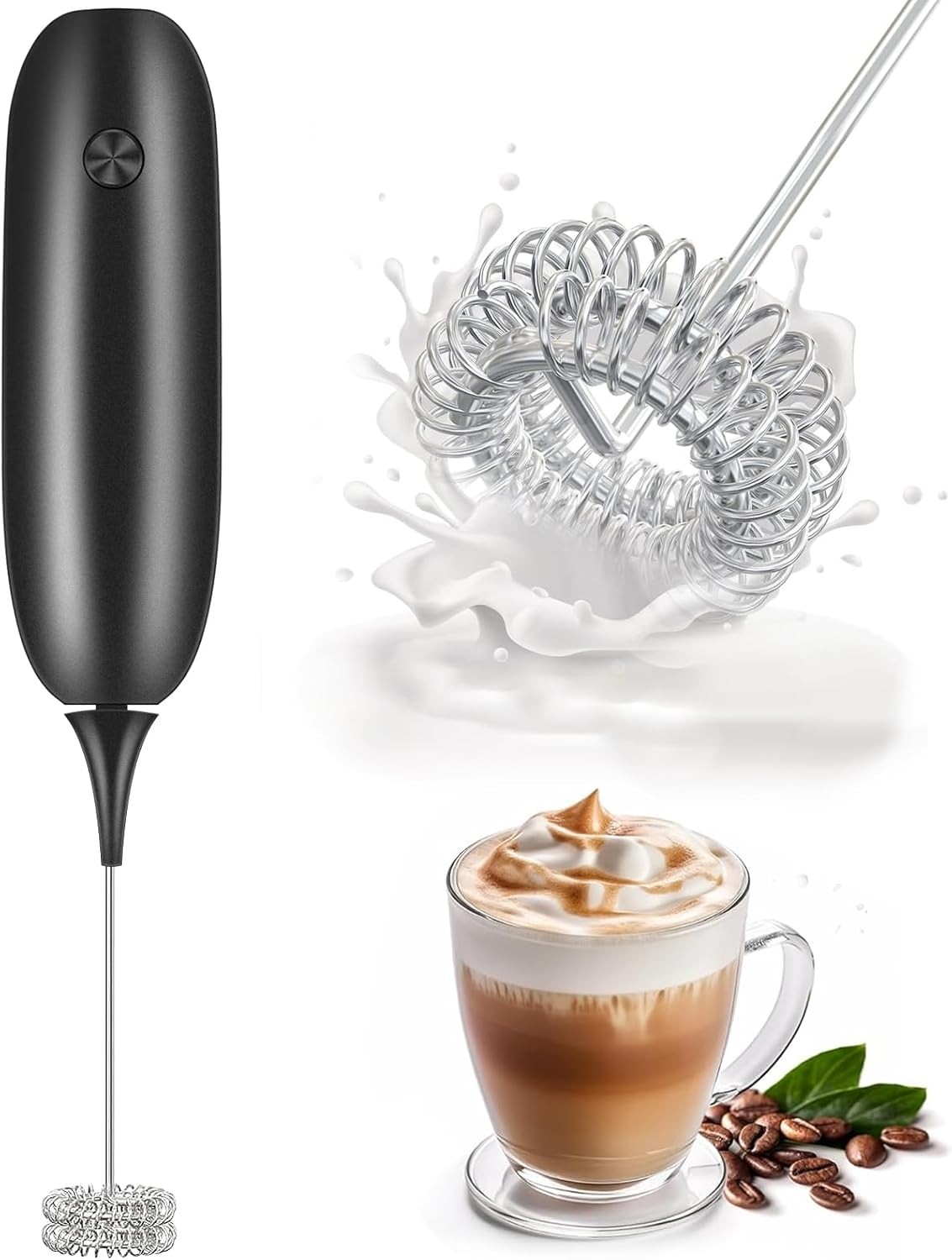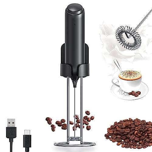 Milk Frother Handheld Whisk Rechargeable Drink Mixer, Coffee Frother Whisk & Mini Drink Mixer Milk Frother Foamer, Electric Portable for Latte, Cappuccino, Hot Chocolate- Black