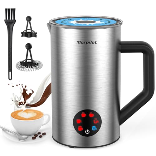 Milk Frother, Morpilot 4 in 1 Electric Milk Frothers, Hot & Cold Milk Foamer, 240ml, 400w, Smart Temperature Controls, Silent Operation, for Coffee, Cappuccino, White