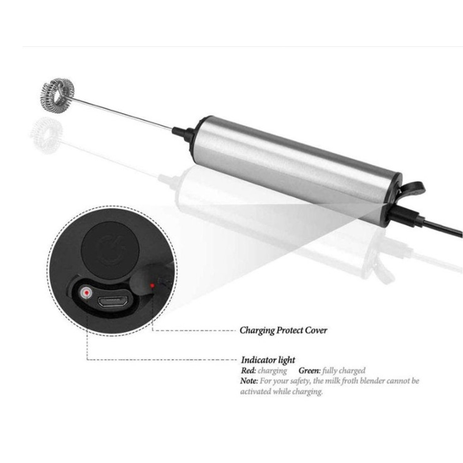 Electric Milk Frother Handheld Mini Milk Foamer with Stainless Steel Stand Rechargeable Powerful Electric Whisk for Coffee Cocktails, Sauces, Coffee Drinks and Soups