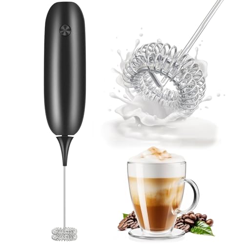 Milk Frother Handheld Whisk Battery Powered Drink Mixer, Milk Frother Foamer & Mini Drink Mixer Coffee Frother, Electric Portable for Latte, Cappuccino, Hot Chocolate - Black