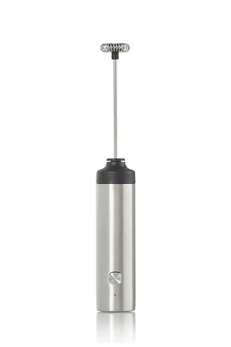 AdHoc Moro Rechargeable Electric Milk Frother, Powerful One Touch Handheld Milk Foamer/Sauce Frother/Drink Mixer, Stainless Steel/Plastic, Removable Whisk, Silver
