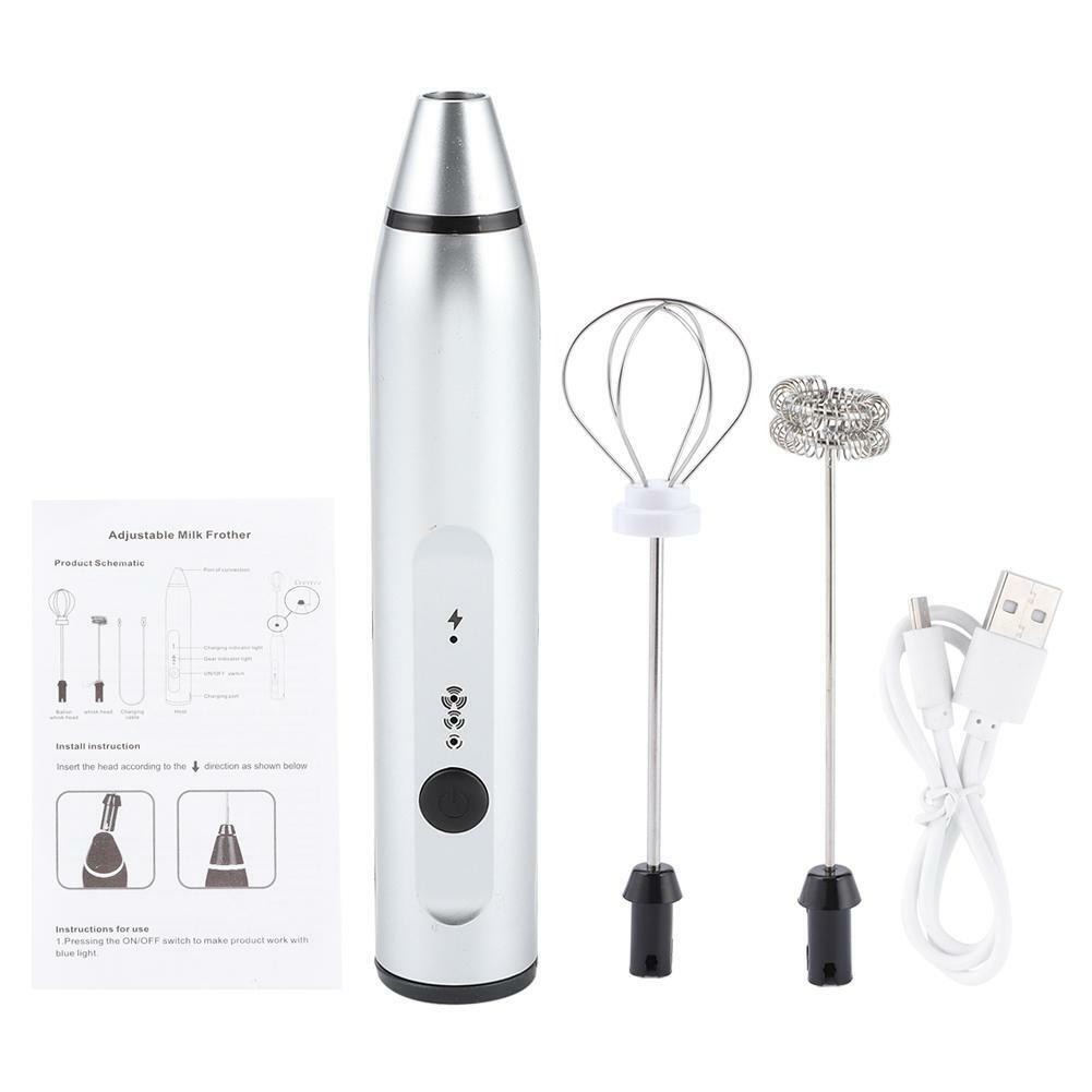 SSilver Rechargeable Milk Frother Electric Coffee Mixer Handheld Egg Beater SG