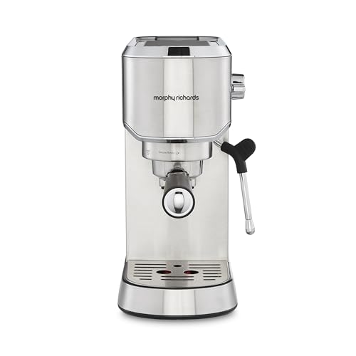 Morphy Richards Compact Espresso Machine, Dual Cup, 1L Water tank, Variable Steam Control and Milk Frother Wand, Ground Coffee and ESE Pod Compatible, Stainless Steel, 172022