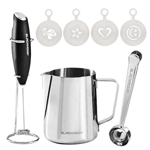 Blackmoor Barista Accessories Set - 600ml Milk Jug, Milk Frother, Coffee Scoop with Bag Clip & 4 Stencils/Create Café-Quality Lattes and Cappuccinos at Home/Coffee Gift Set 68489