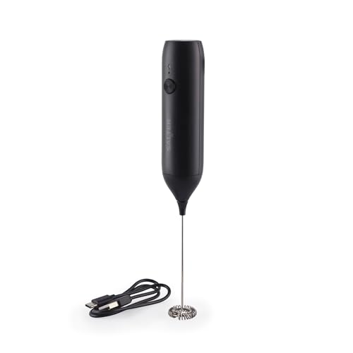 Salter Rechargeable Milk Frother – Handheld Coffee Whisk, One Touch Button Operation, USB Cable Included, Easy to Clean, Barista-Style Drinks, Stainless Steel, Latte, Cappuccino, Hot Chocolate, Black