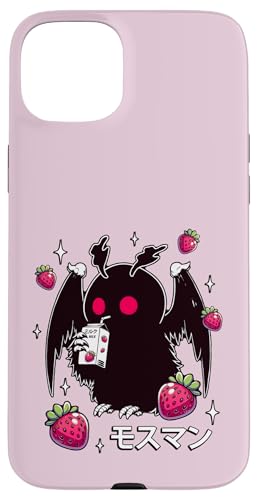 Cryptid Mothman Lover Kawaii Strawberry Milk Shake Carton Case for iPhone 15 Plus