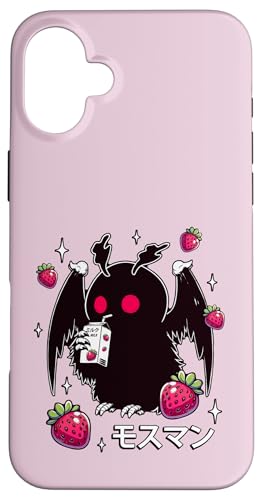 Cryptid Mothman Lover Kawaii Strawberry Milk Shake Carton Case for iPhone 16 Plus