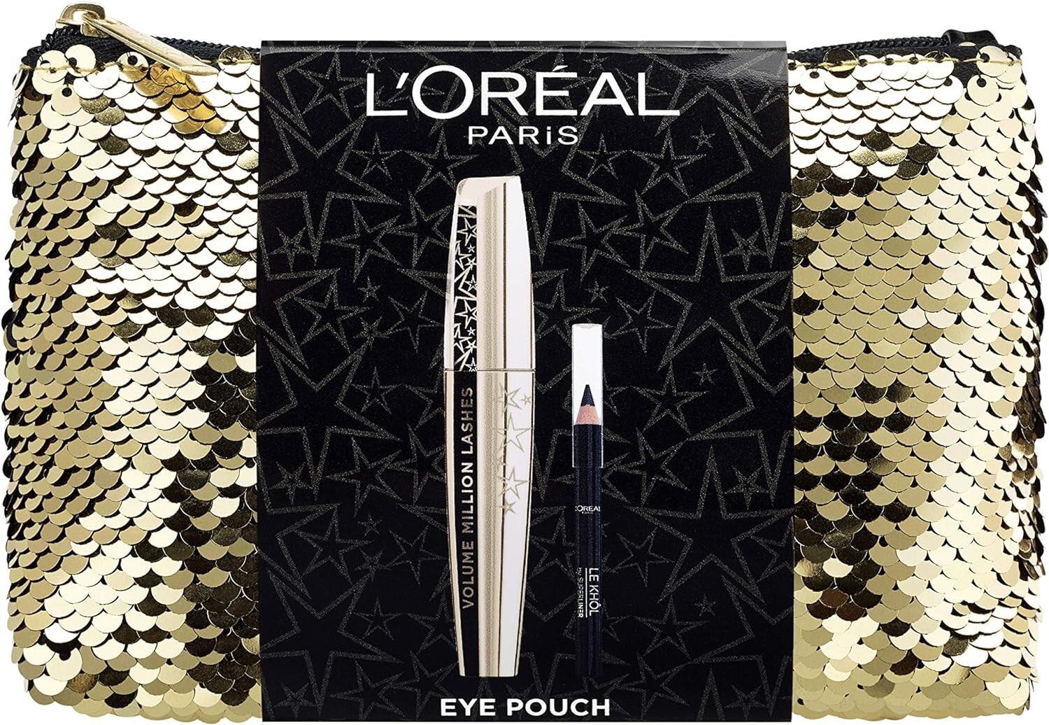 L OREAL Gift Set Million Lashes Black + Black Khol + Gold Sequin Pouch New