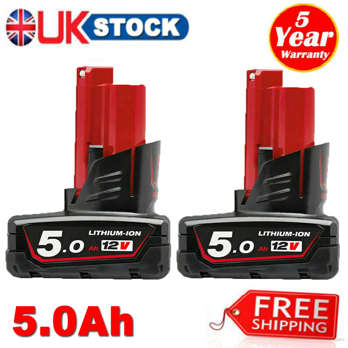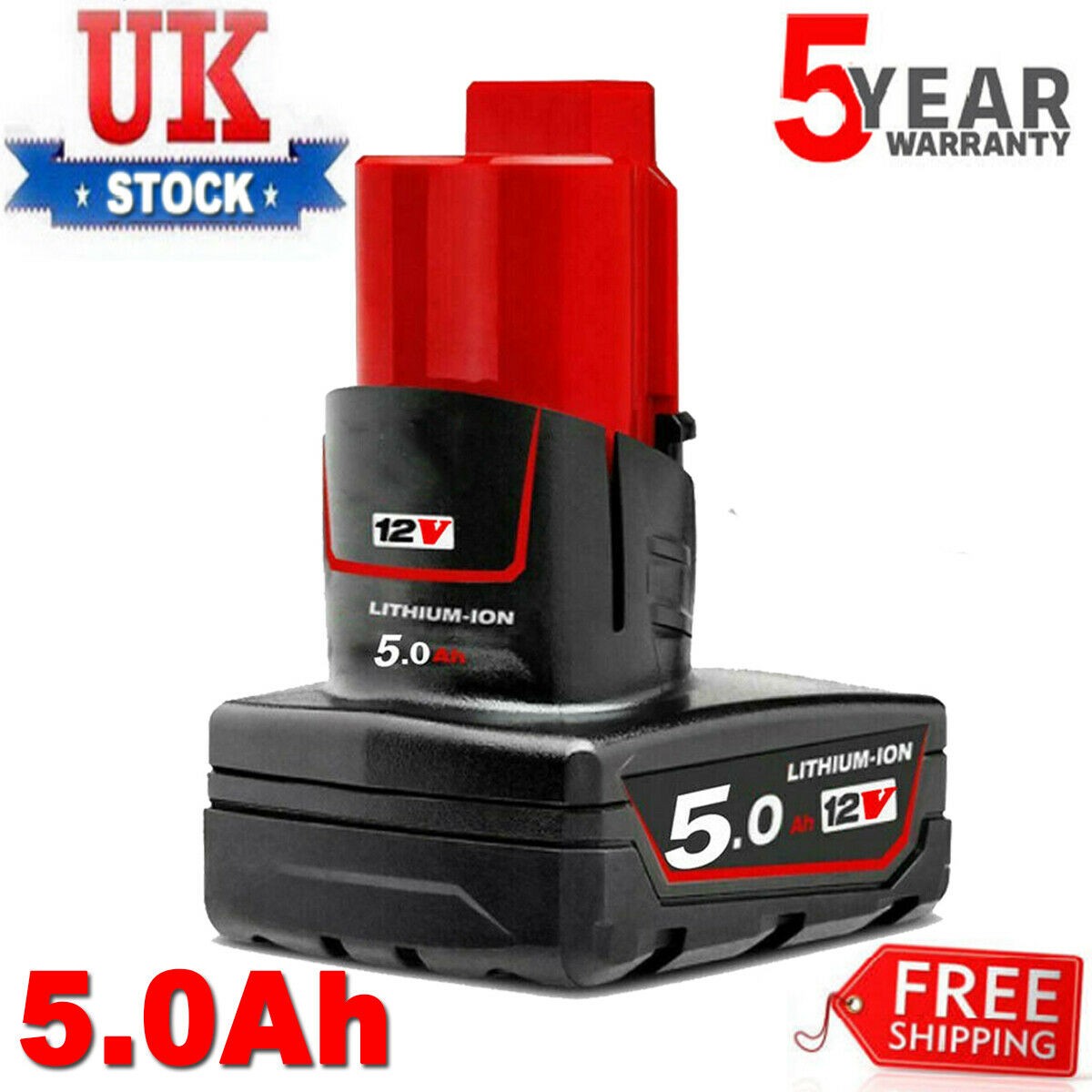 (5.0Ah) 5.0/6.0Ah 12V Replacement Lithium Ion Battery for Milwaukee Cordless Power Tools