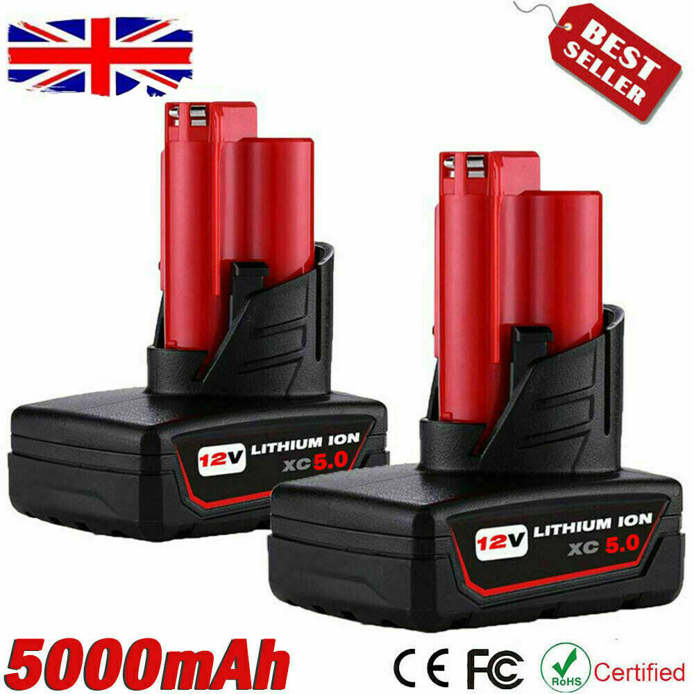 2X 12V For Milwaukee M12 XC 5.0Ah Li-ion Battery High Capacity M12B6 48-11-2460