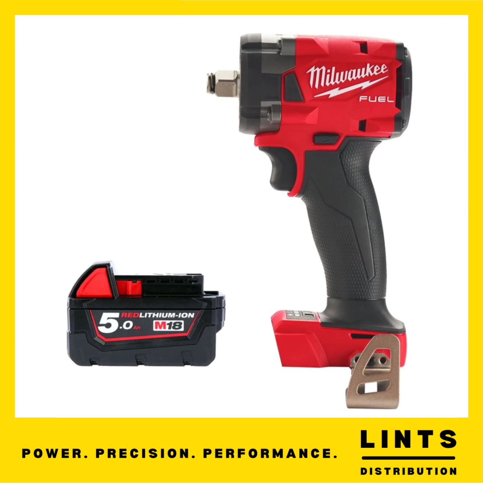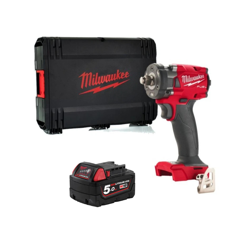 Milwaukee M18FIW2F12-0 18V Fuel 1/2" Compact Impact Wrench + 5ah Battery