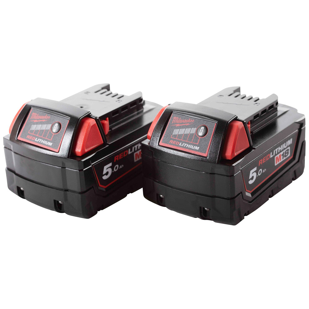 Milwaukee M18B5 18V 5Ah Battery Pack of 2, 18 V, R