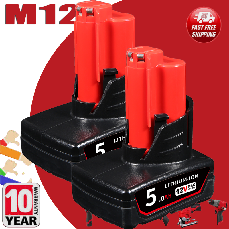 2Pack For Milwaukee M12 XC 5Ah High Capacity Battery 12V 48-11-2402 M12B5 M12B6
