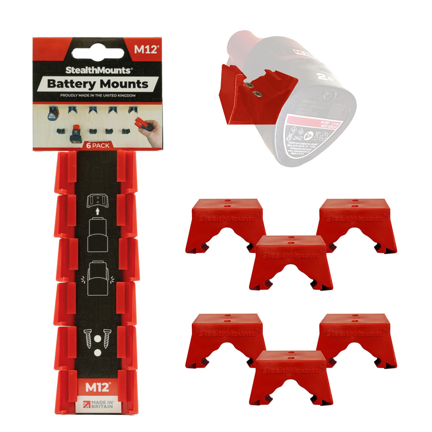 Stealth Mounts 6 Pack Battery Mounts for Milwaukee 12V M12 Batteries Red