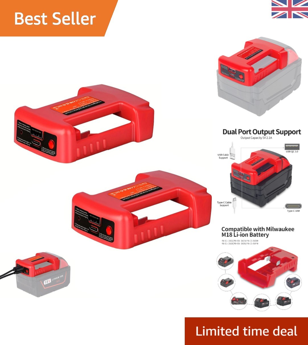 2-Pack Rapid Charging Adapter for Milwaukee 18V Lithium Batteries with USB Ports