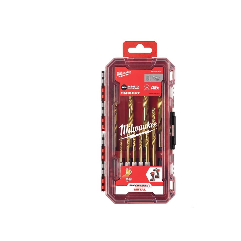 Milwaukee 10 Piece SHOCKWAVE Red Hex HSS Titanium Metal Drill Bit Set