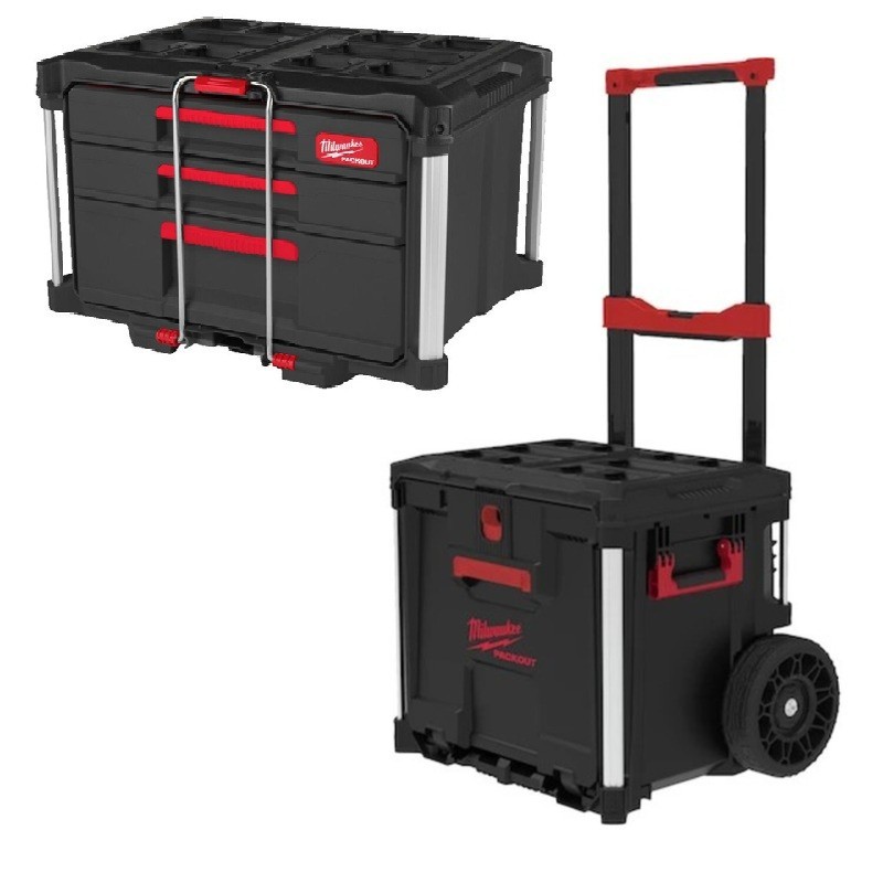 Milwaukee PACKOUT Trolley Box and 3 Drawer Toolbox Bundle Heavy Duty UK NEW