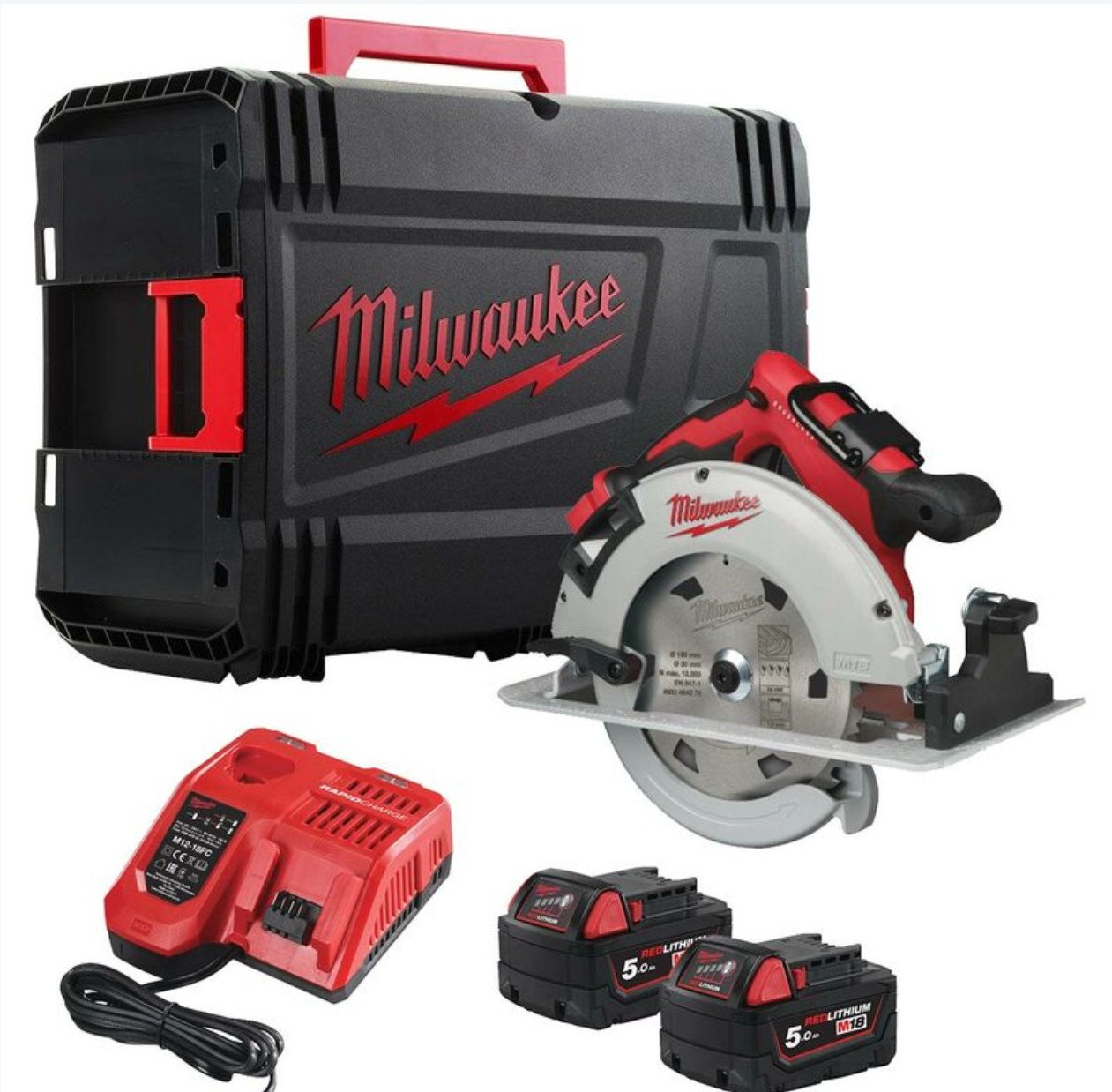 Milwaukee M18BLCS66-502X 18V 190mm Brushless Circular Saw, 2x 5Ah Batts & HD Box