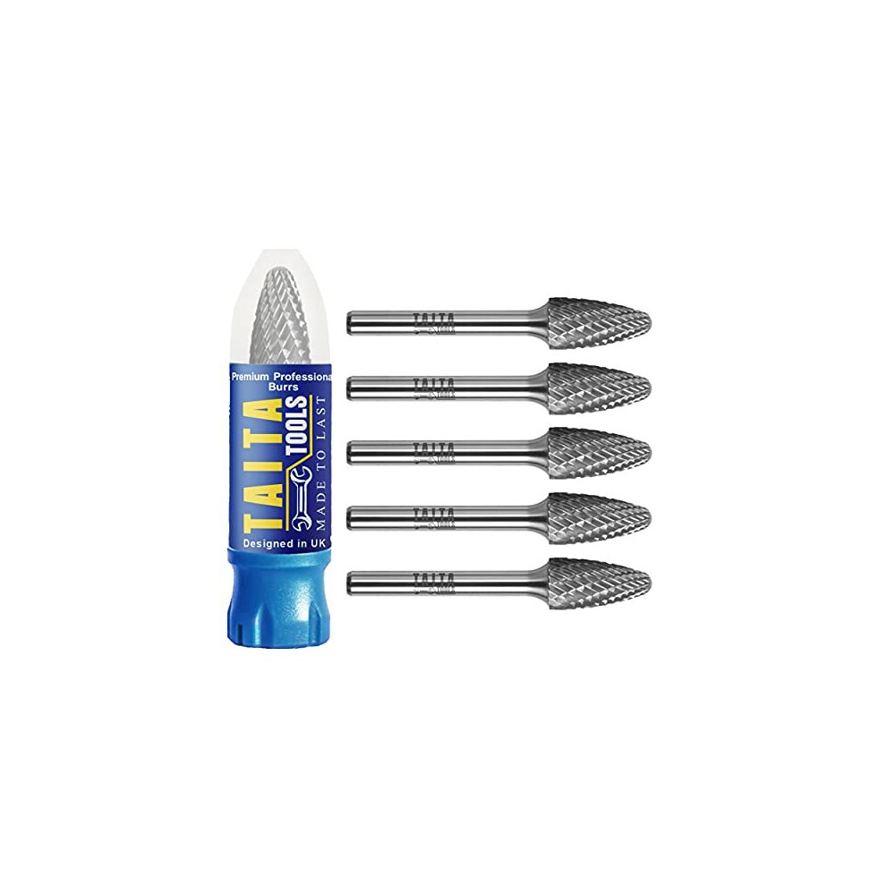 Carbide Burr 1/4" Shank, SF-5 Tungsten Double Cut Rotary Die Grinder Bits - Cutting Burrs for Milwaukee, Dewalt and Makita Die Grinder Accessorie