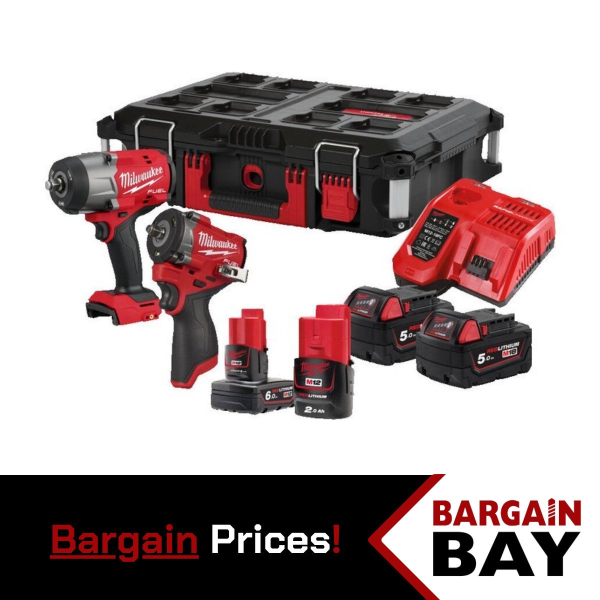 Milwaukee M12 FUEL Powerpack: Impact Wrench & Ratchet Kit with M12 B6 Battery