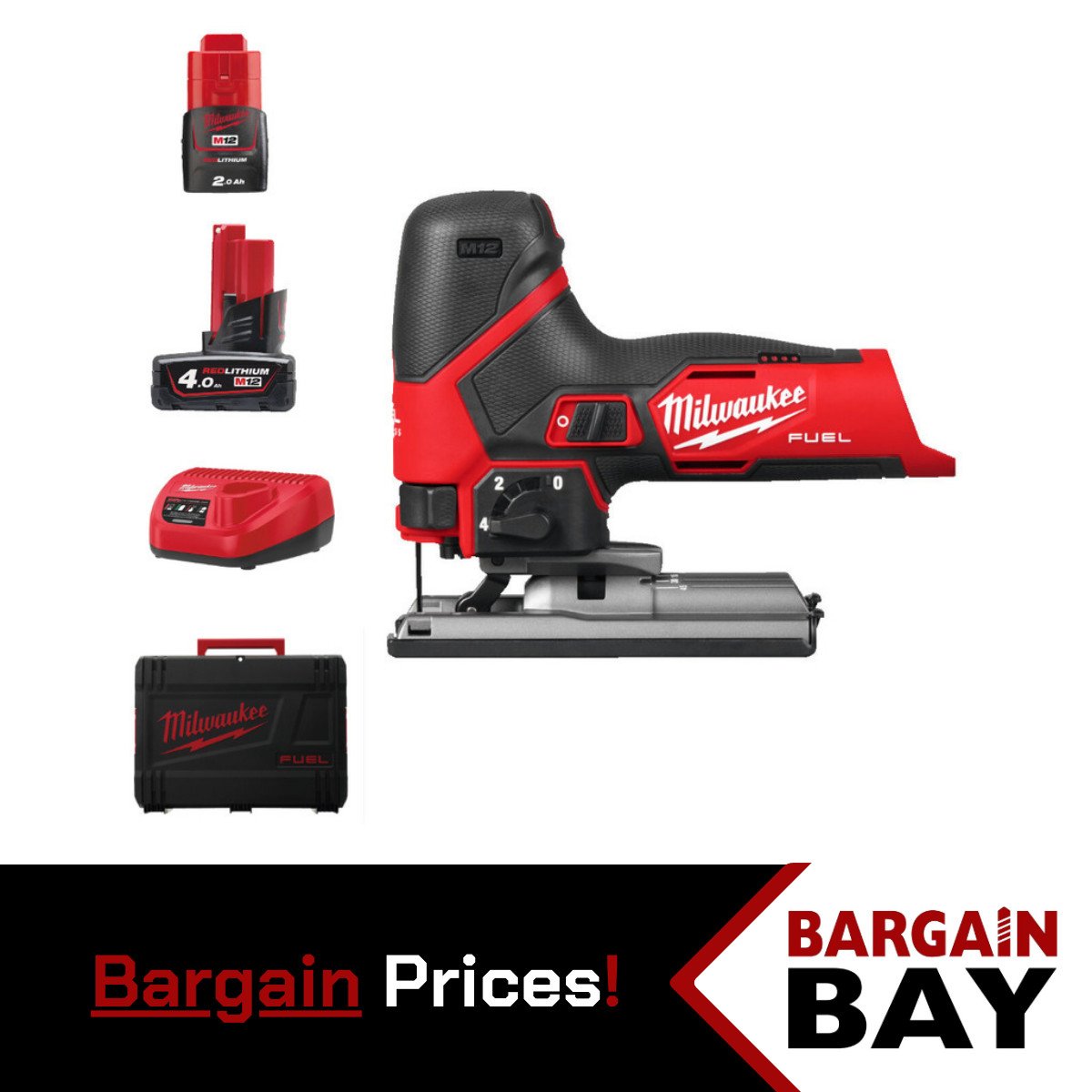 Milwaukee M12FJS-422X 12v Fuel Bodygrip Jigsaw Kit - 2 Batteries, Charger & Case