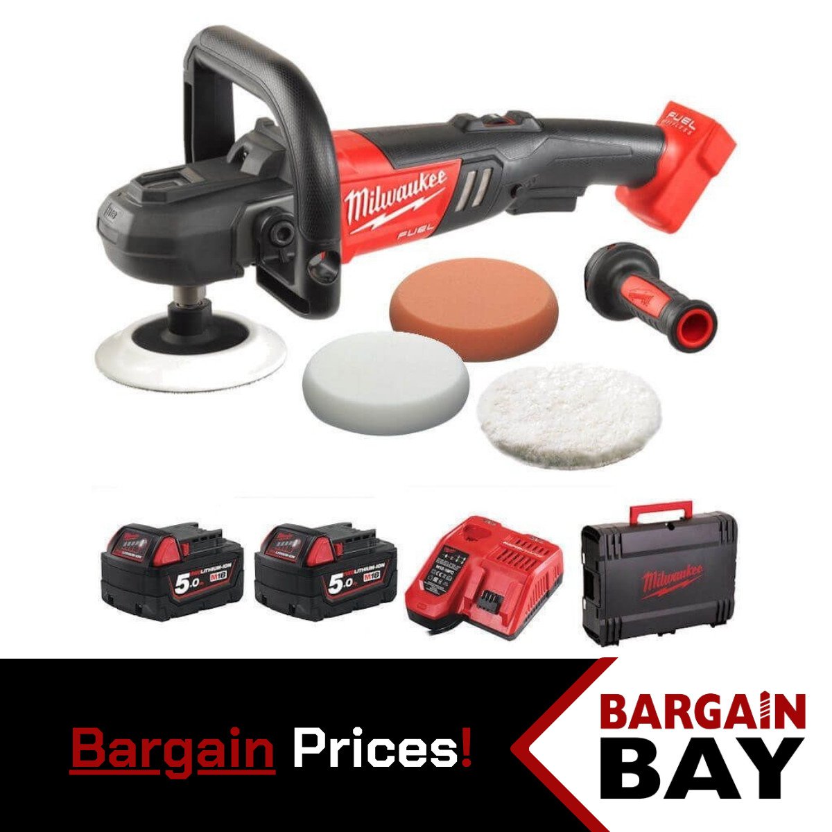 Milwaukee M18FAP180-502X 18V Fuel 180mm Polisher Kit, 2 x 5.0ah Batteries