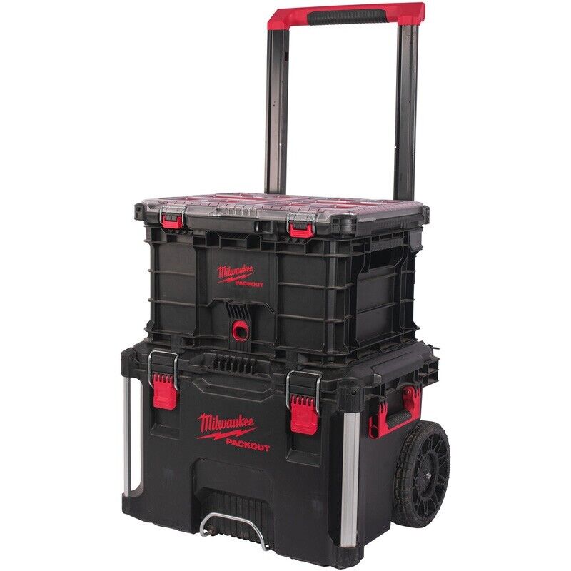 Milwaukee PACKOUT 4 Piece Set Slim Organiser + Crate +Wheeled Trolley 2 Draw.