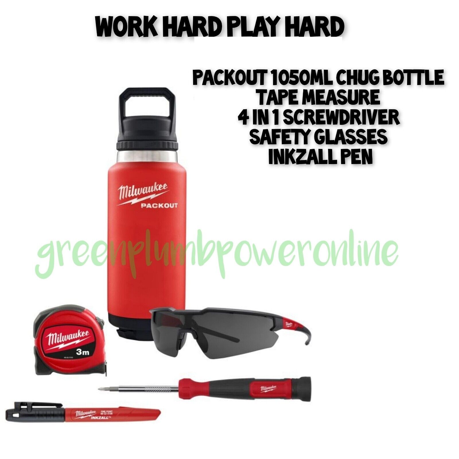 Milwaukee Packout Chug Bottle 1050ml Tape Measure 4-in 1 Screwdriver Pen Glasses