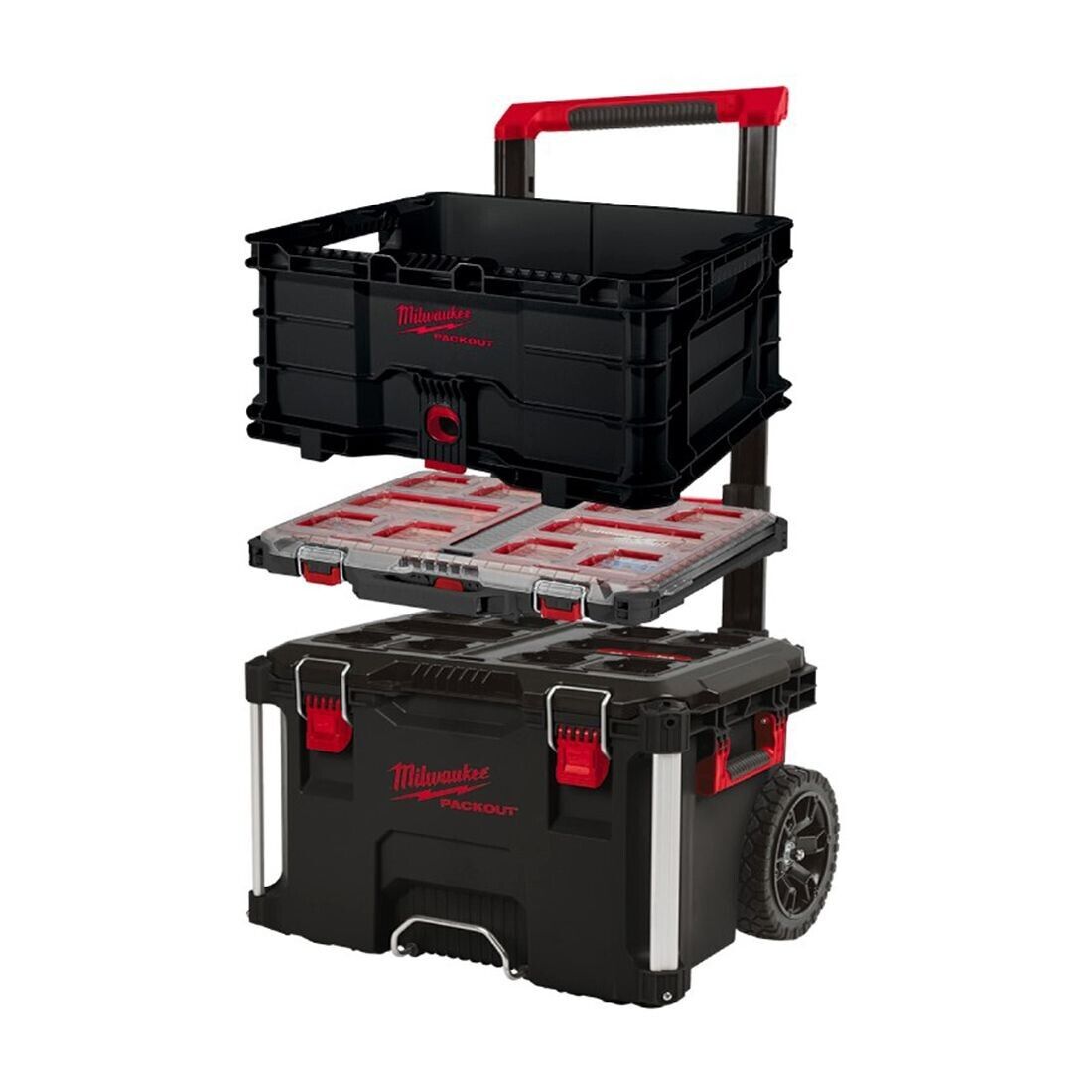 Milwaukee PACKOUT 3 Piece Set Slim Organizer + Crate +Wheeled Trolley 4932493927
