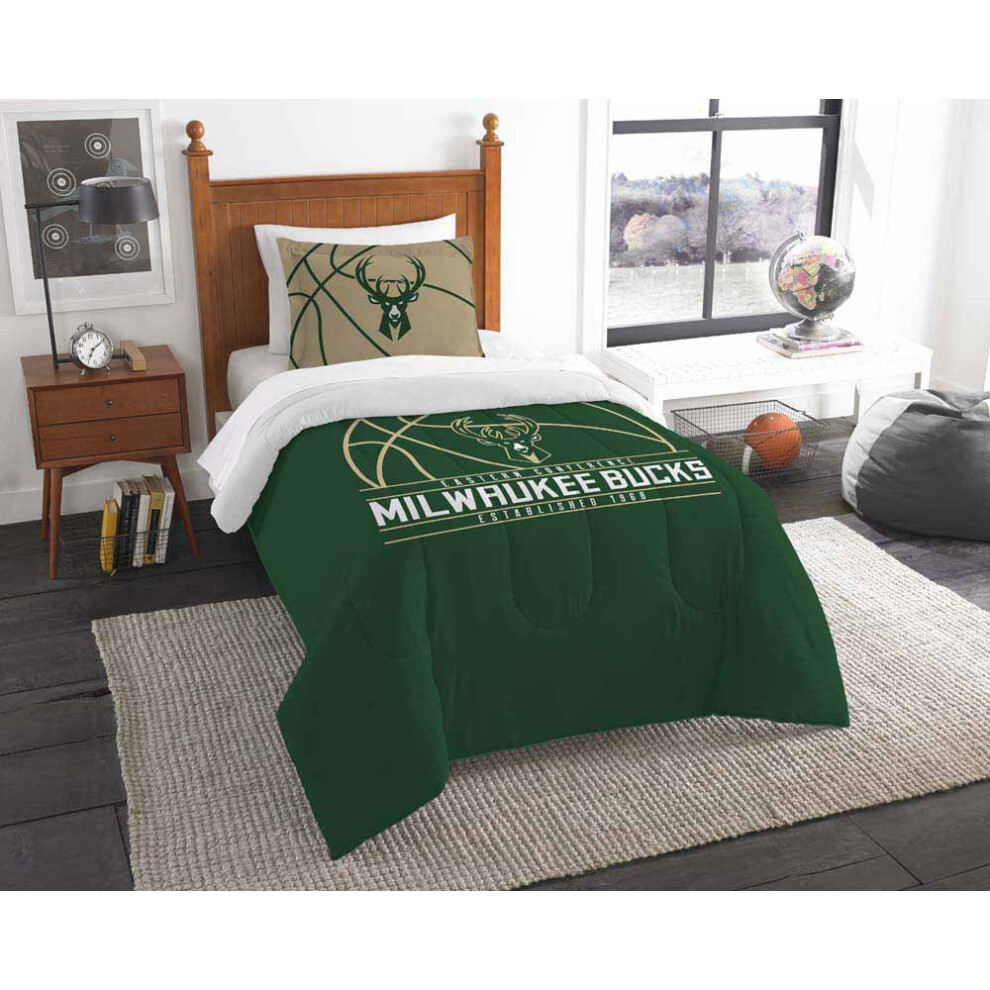 Northwest NBA Milwaukee Bucks Comforter and Sham Set Twin Reverse Slam