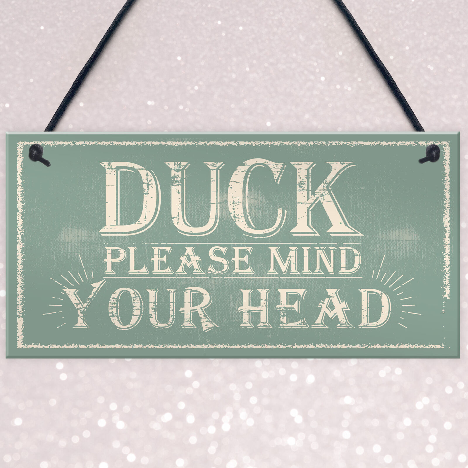 DUCK! Please Mind Your Head Friendship Home Gift Hanging Plaque Notice Step Sign