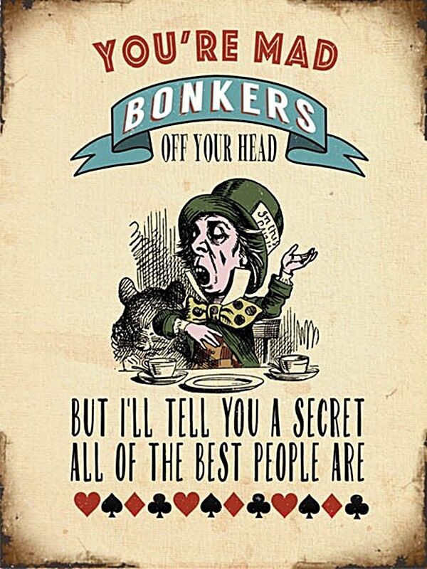 You're Mad Bonkers Off Your Head Alice In Wonderland Small Metal Sign (og)
