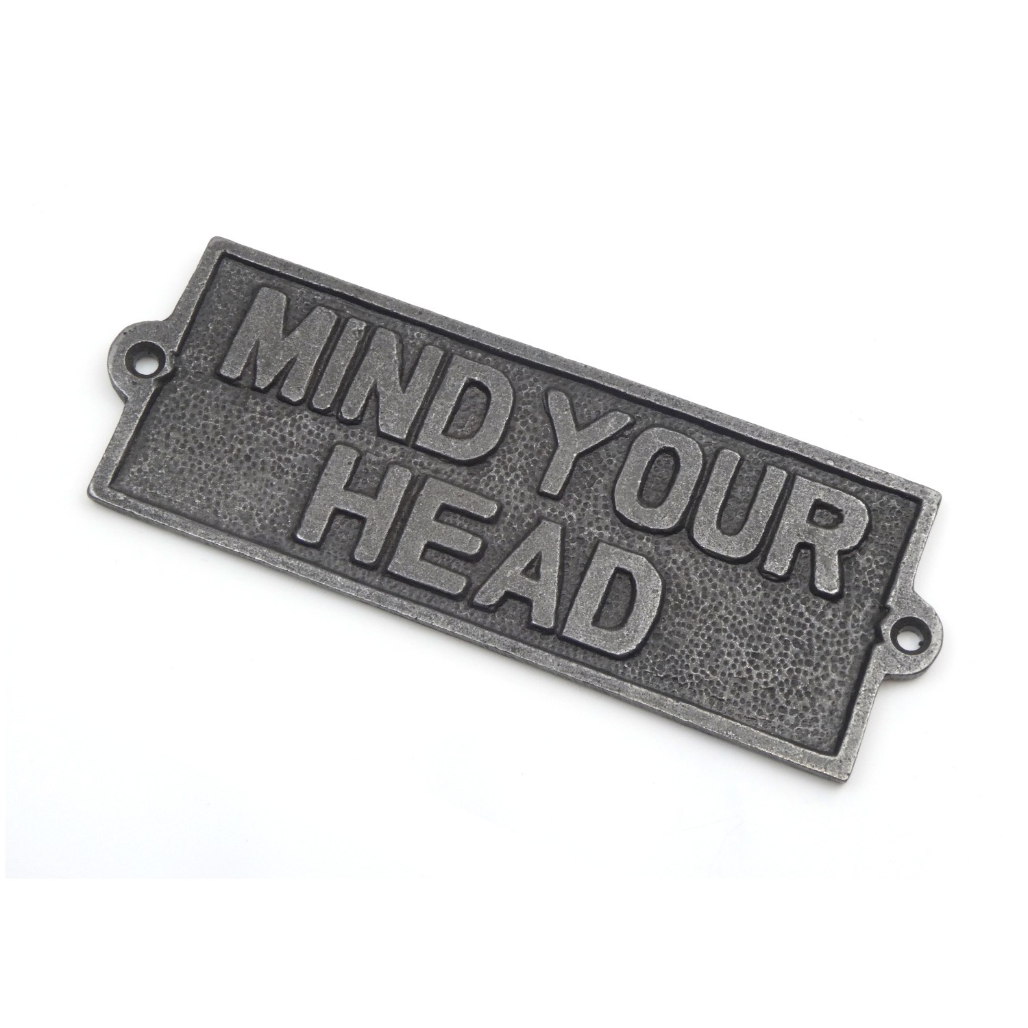 MIND YOUR HEAD SIGN CAST METAL VINTAGE IRON STYLE BLACK WHITE WALL PLAQUE PLATE