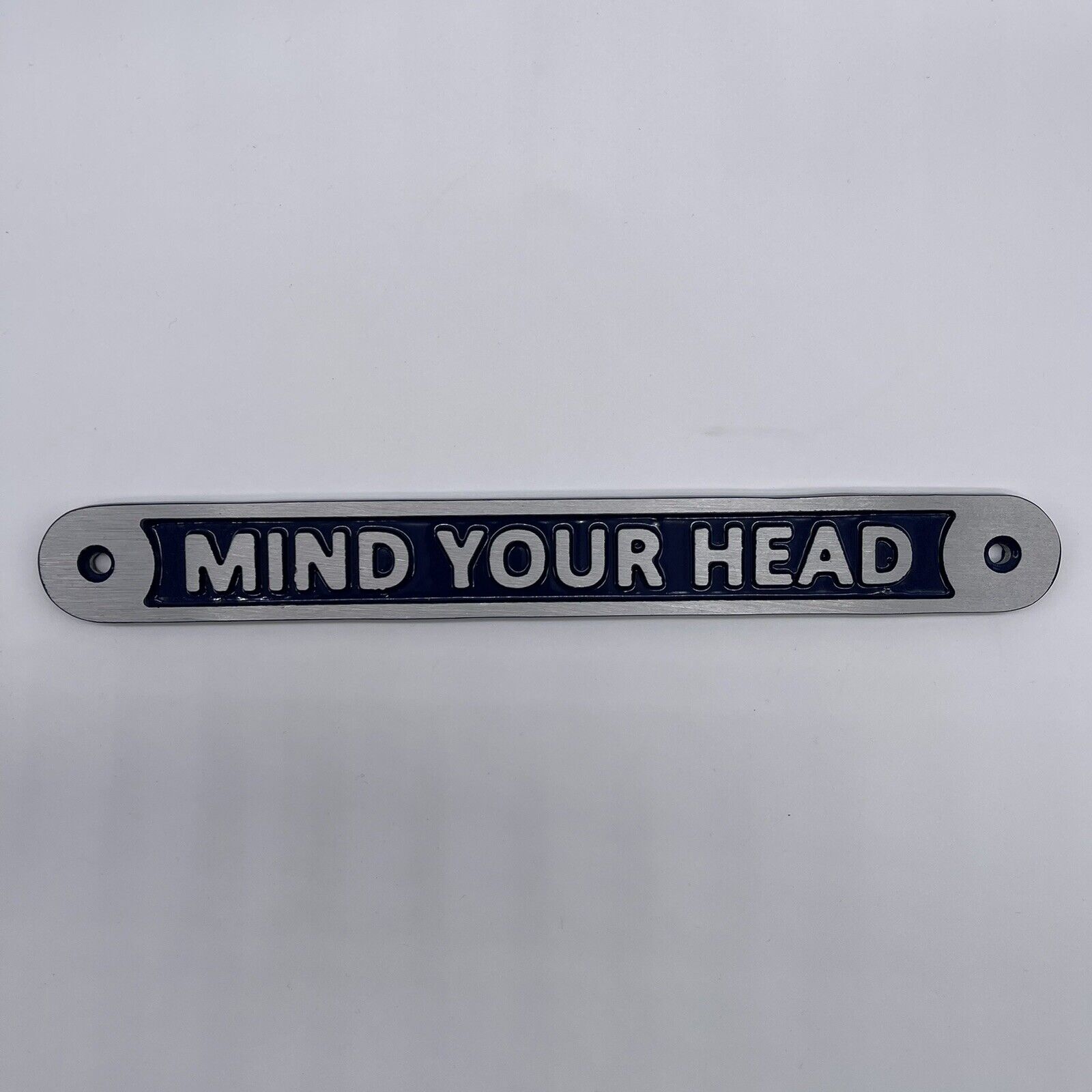 MIND YOUR HEAD Sign For Doors Blue With Silver Letters Retro Vintage 85