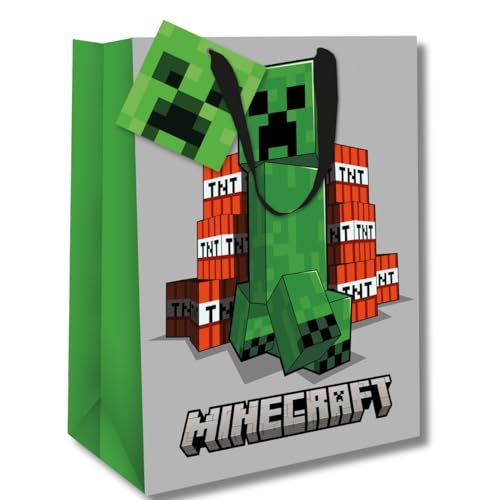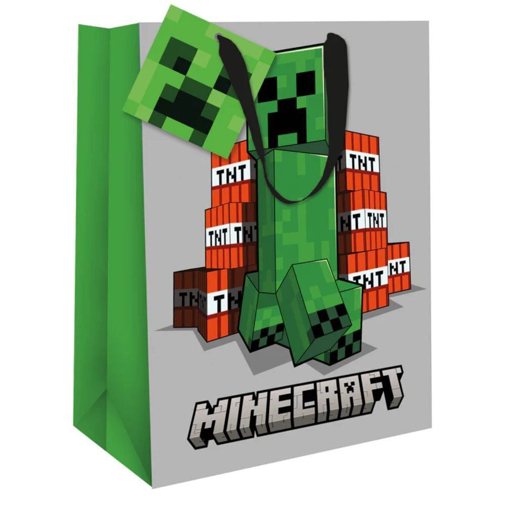 Danilo Promotions Limited Minecraft Boys Gift Bag, Perfect for Birthday Boys of Any Age, Minecraft Gift Bag, Officially Licenced and Responsibly Resourced, Size 33 x 26 x 13.5 cm, Multi-Coloured