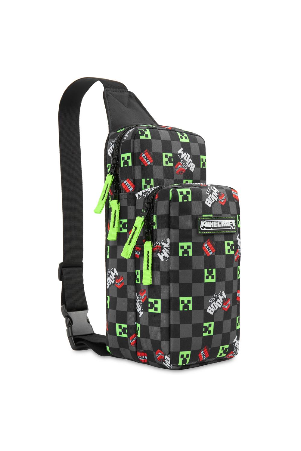 Minecraft Crossbody Bag for Boys Teens Creeper Sling Bag with Compartments Adjustable Strap Chest Bag for Travel Holidays Ideal for Phone Wallets Gamer Gifts (Black/Green)