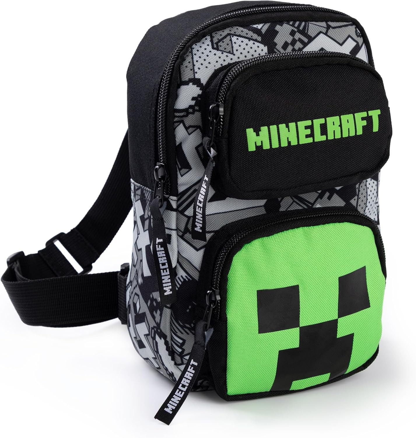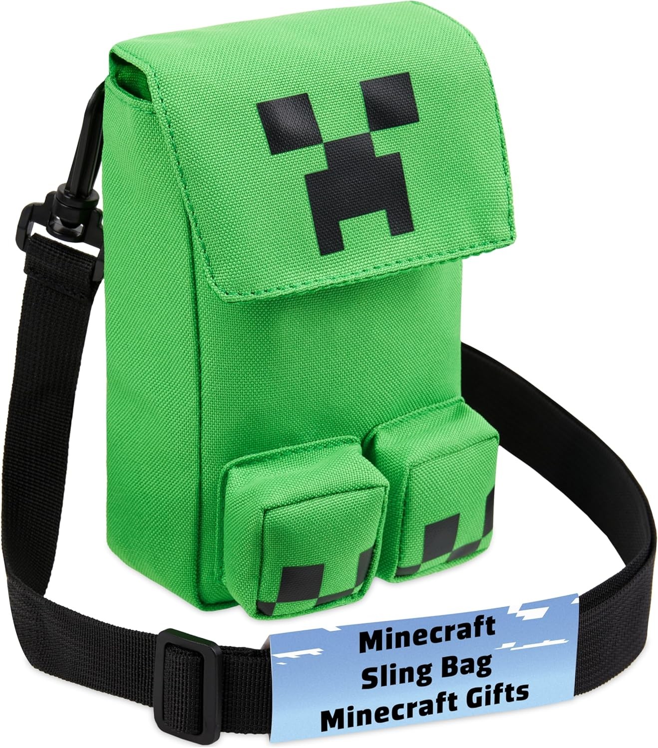 Minecraft Crossbody Bag for Boys Teens Creeper Sling Bag with Compartments Adjustable Strap Chest Bag for Travel Holidays Ideal for Phone Wallets Gamer Gifts (Green)