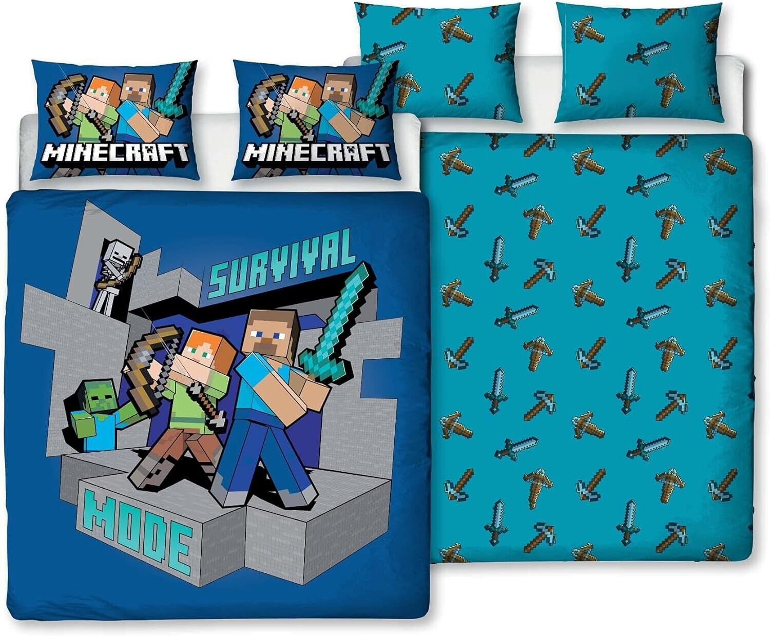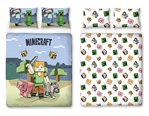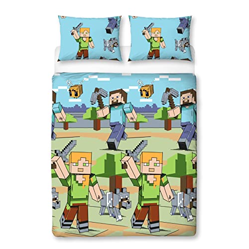 Character World Minecraft Official Double Duvet Cover Set | Adventure Gaming Design Reversible 2 Sided Bedding Including Matching Pillow Cases Brands Double Bed Set