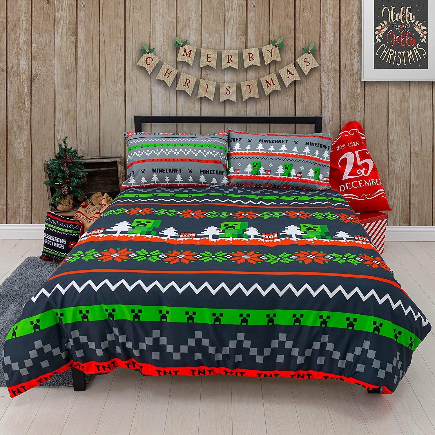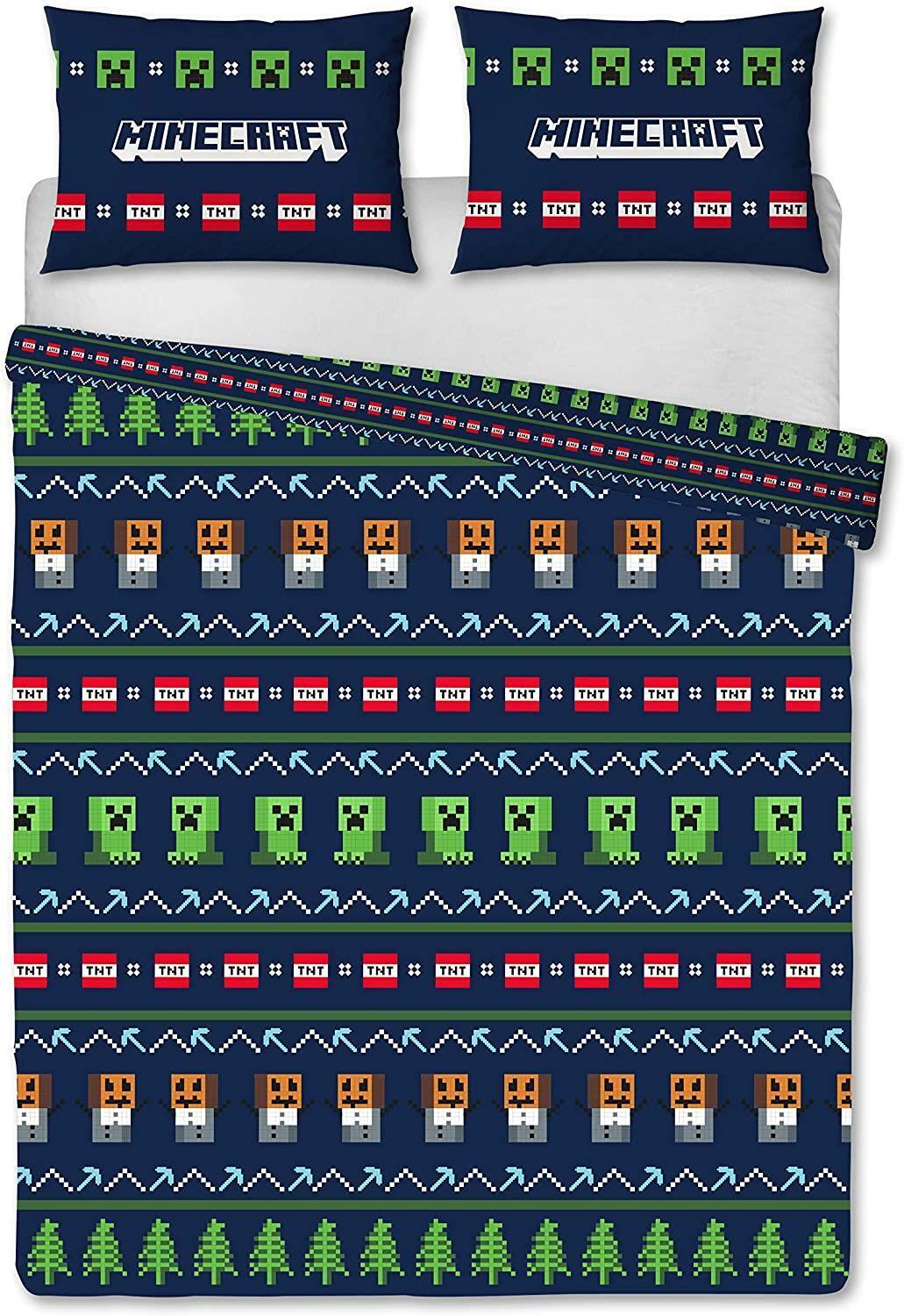 Minecraft Alpine Double Duvet Cover Reversible Christmas Bedding Set Fairisle